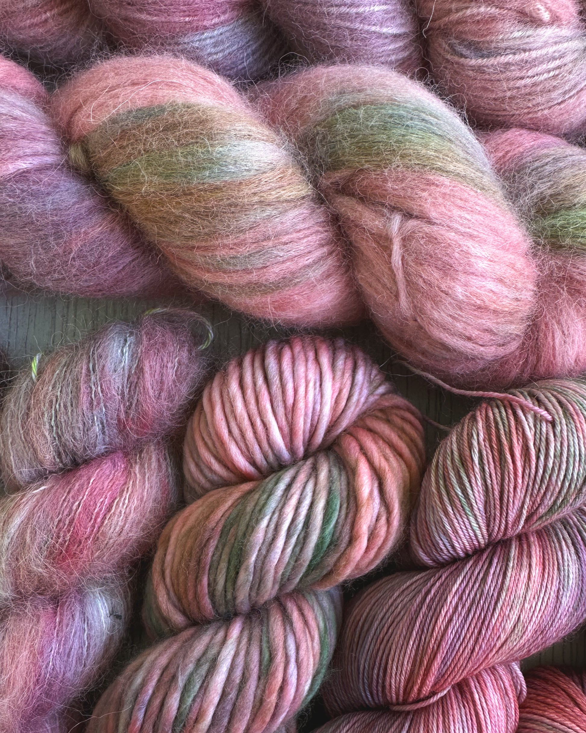 This earthy pink base draws inspiration from the beautiful rose gold sunsets that can be seen on the coastlines of the PNW. It features accents of green, periwinkle, and purple. Perfectly complements the PNW ōSHen Collection tonals.
